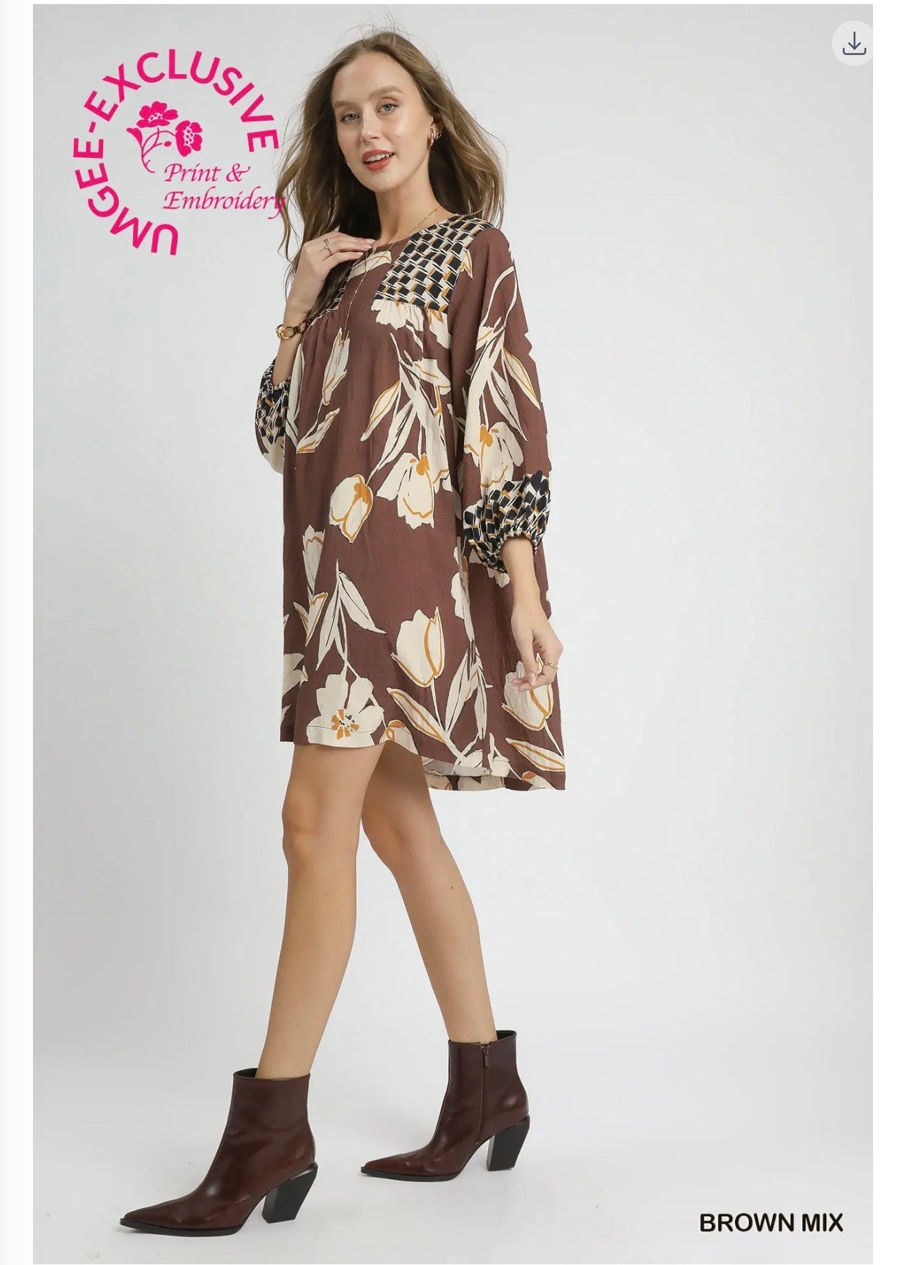 • 3/4 balloon sleeves