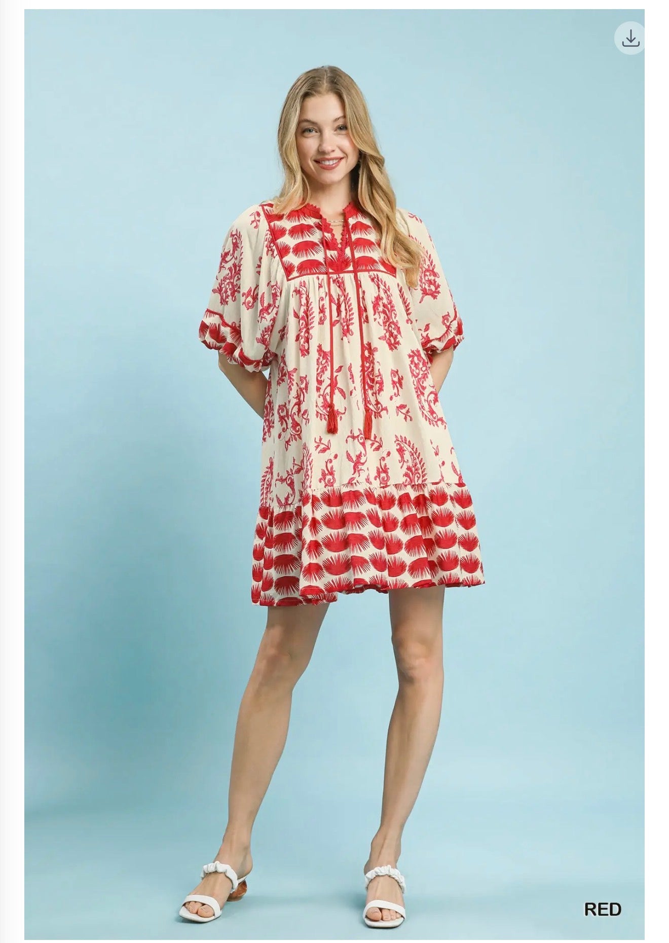 • Babydoll tunic dress with flowy, tiered silhouette